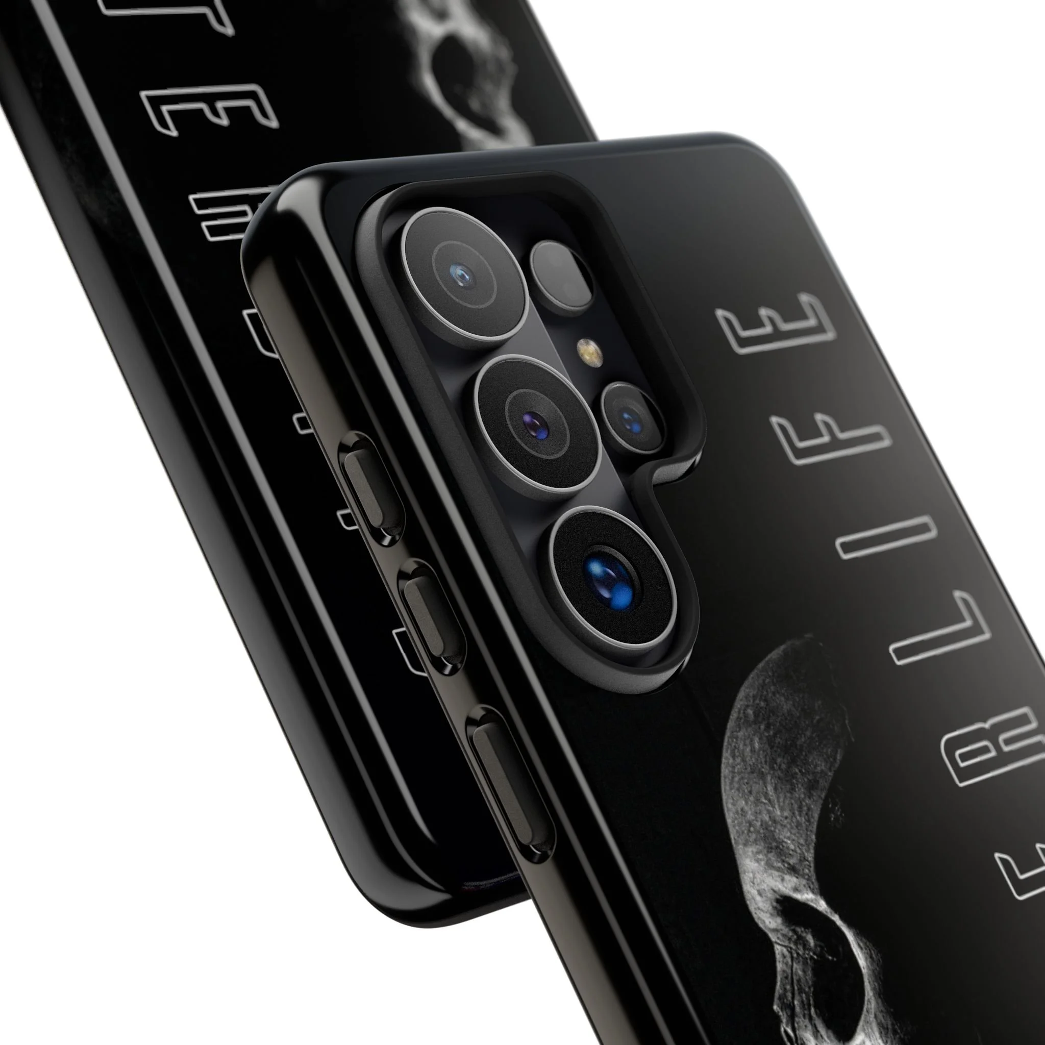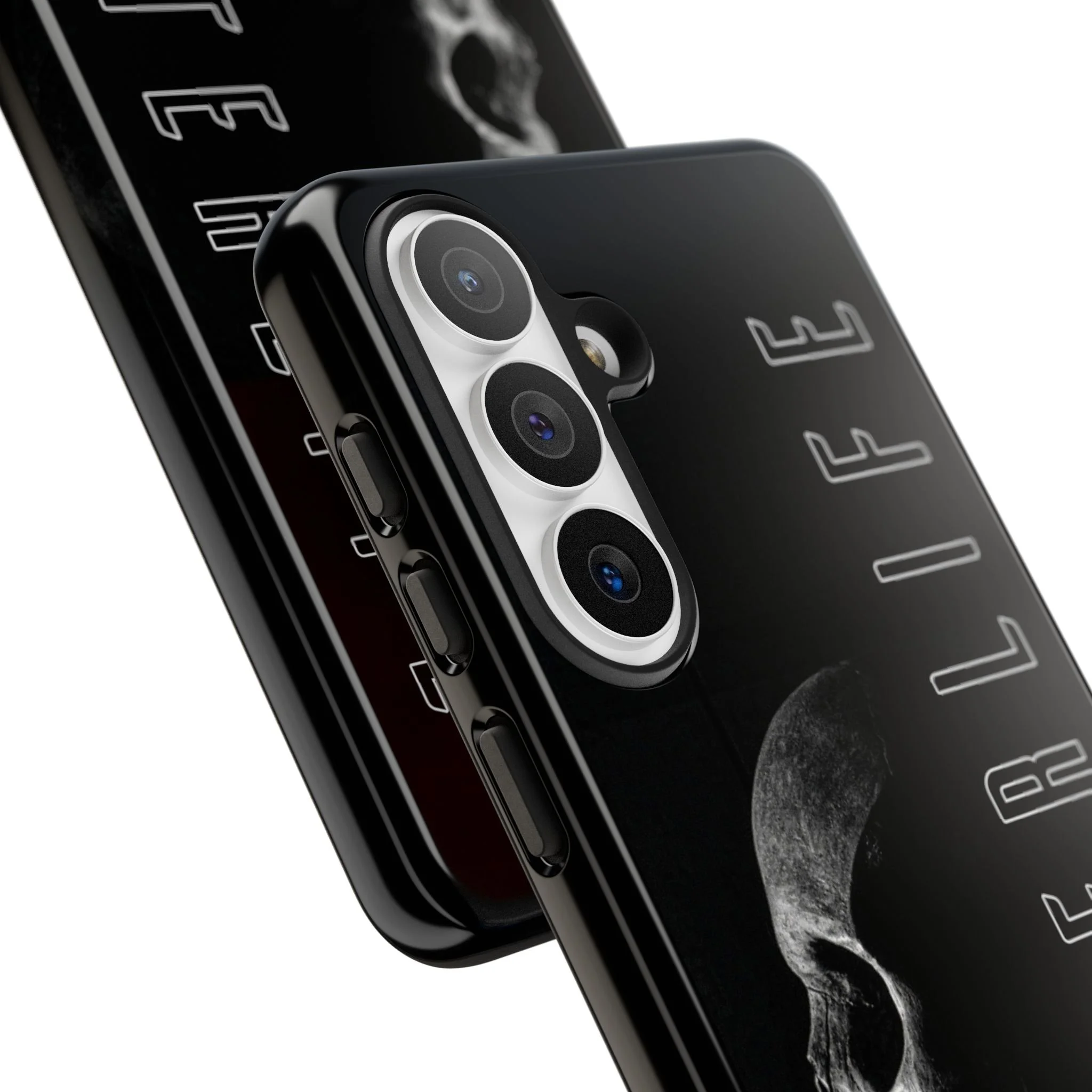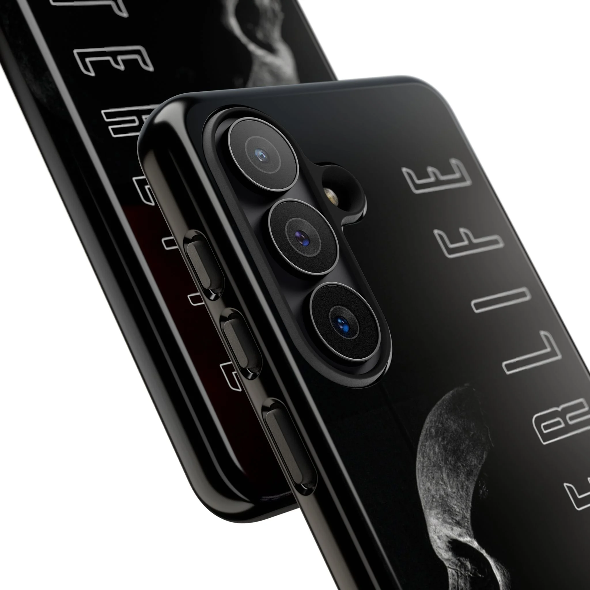A sleek, protective phone case that wears darkness with quiet confidence. Dual-layer construction (rigid polycarbonate shell with a soft TPU silicone liner) absorbs shock and resists drops while the 3D wrap print keeps the image rich and continuous. UV-resistant coating preserves the image outdoors, and precise cutouts keep ports and wireless charging accessible.